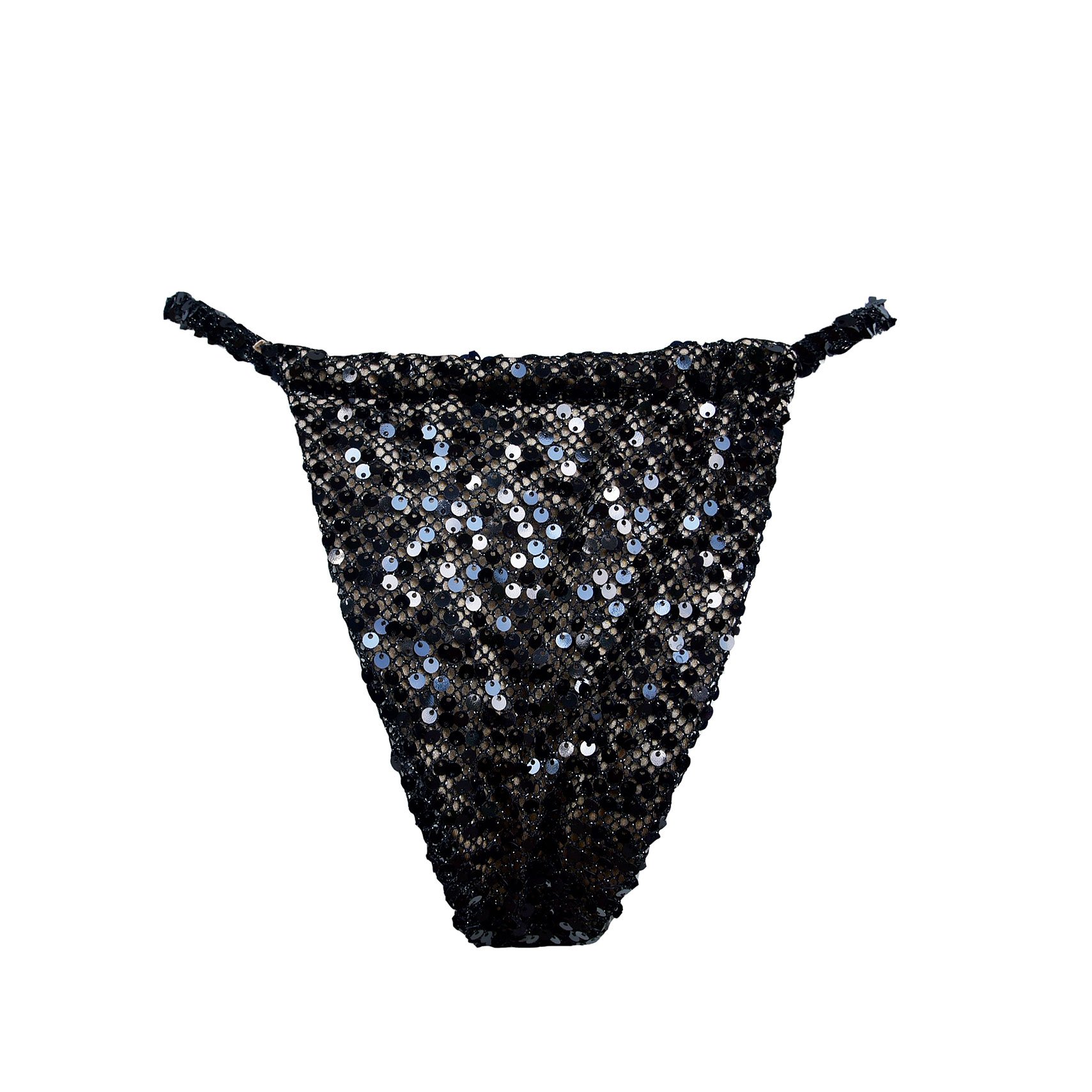 BLACK SEQUIN MESH BIKINI BOTTOM