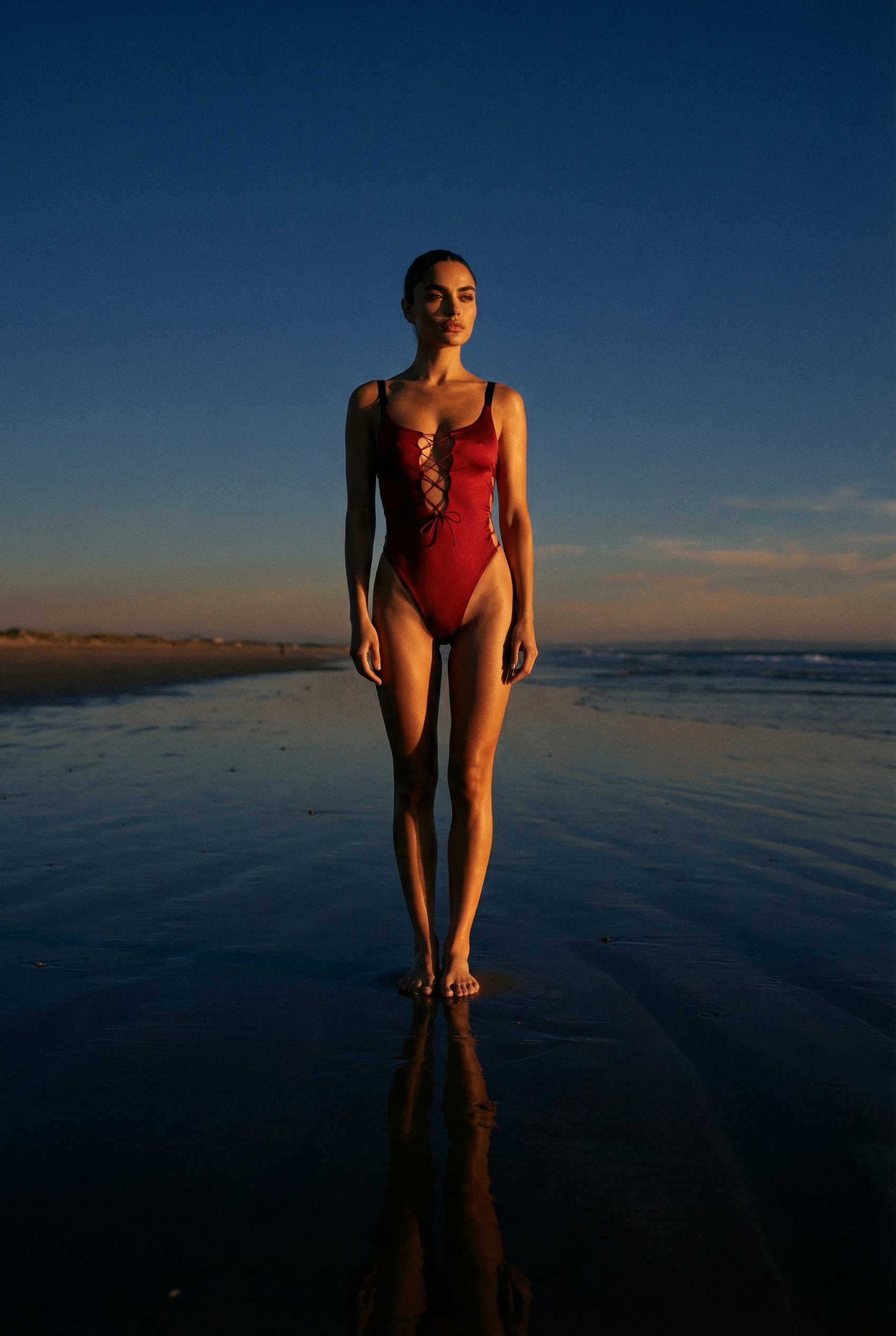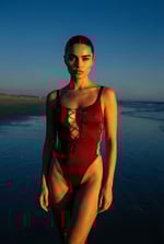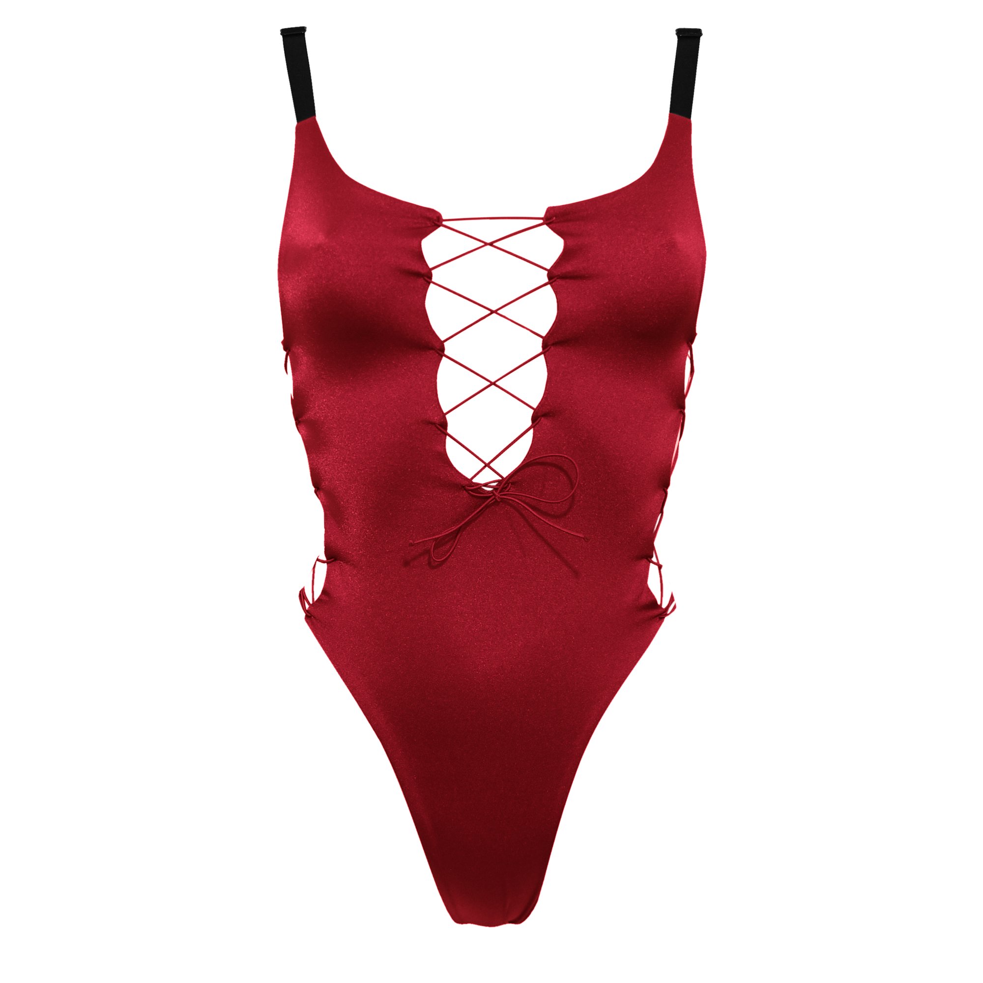 SHINNING RED LACEDUP SWIMSUIT